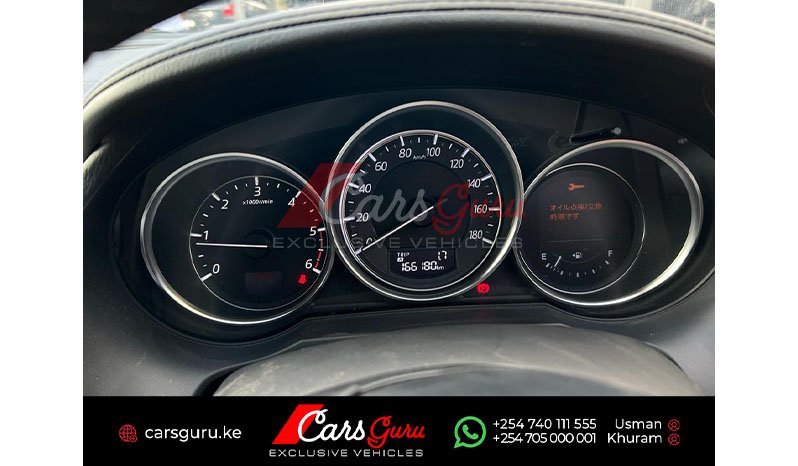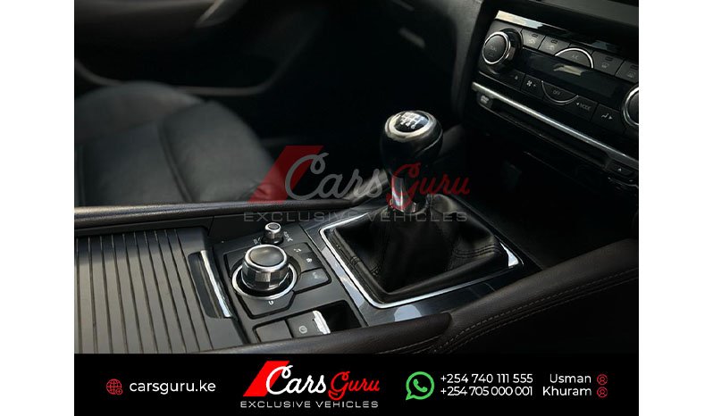 XD L grade type, Sunroof, Xenon headlights, Fog lights, Alloy rims, Roof rail, Parking assist, Double exhaust pipes, Keyless entry, Push start button, Active lane keeping assist, ABS, Steering controls, Cruise control, Power mirrors/doors, Leather seats, Traction control, Active Safety Technology (AFS), LCD screen with reverse camera, Mazda i-Stop system, AC/DVD, Passenger armrest with cup holders, ample boot space.