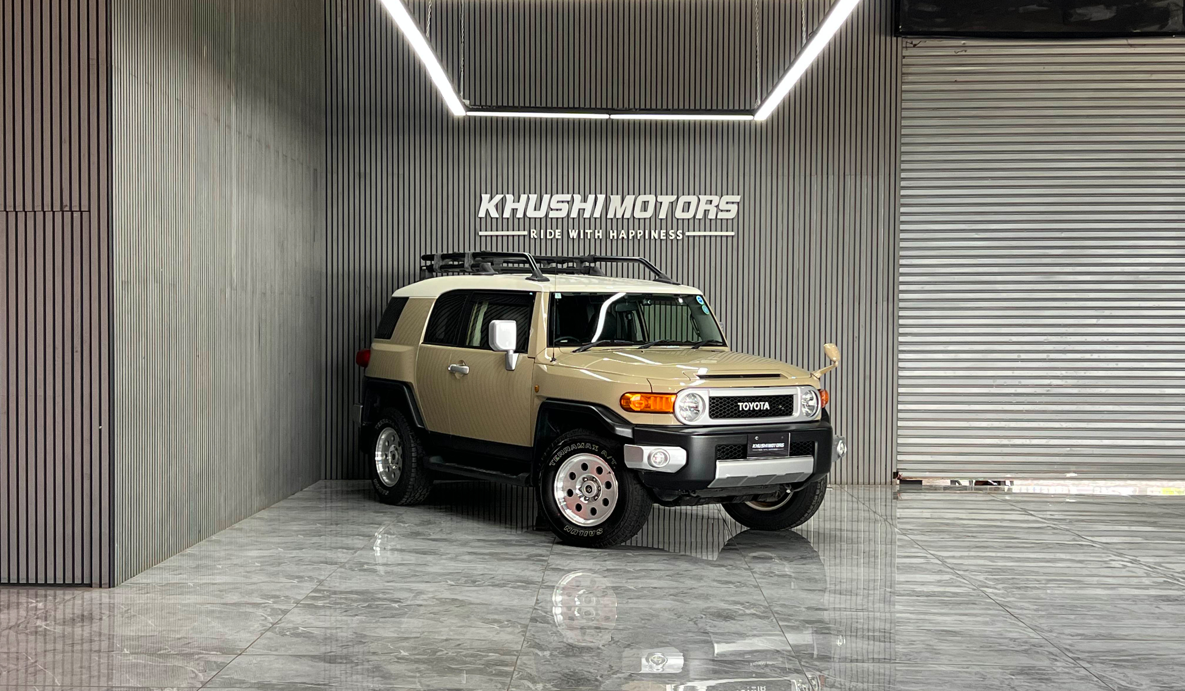 Engineered for pure adventure and unmistakable presence, the Toyota FJ Cruiser embodies the spirit of a true off-road SUV with a bold, retro-inspired identity. Its powerful 4.0L V6 engine, paired with a robust 4WD system, rear differential lock, and advanced terrain controls, harmonizes rugged performance with confident capability across the toughest landscapes. Finished in a distinctive beige exterior with a durable black interior, it delivers a commanding and adventurous driving experience that elevates every journey.